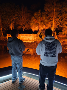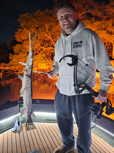 Step into the heart-pounding world of bowfishing with our captivating photo gallery, showcasing the unforgettable moments of our guests in action on Tampa's pristine waters. Our Tampa Bowfishing Charter Photo Gallery is a visual journey that brings to life the thrill and excitement of bowfishing adventures like never before. As you explore our gallery, you'll witness the sheer thrill of bowfishing as our expert anglers and enthusiastic guests take aim at their aquatic targets. The adrenaline-fueled shots captured in these photos showcase the intense concentration and excitement that defines every moment on our charters. Tampa Bay is renowned for its breathtaking natural beauty, and our gallery doesn't fall short in capturing the stunning backdrop of crystal-clear waters, picturesque sunsets, and abundant marine life. These images serve as a reminder of the serene and picturesque environment in which our bowfishing charters take place. With our bowfishing bows in hand we set out on night fishing missions on the flats of Tampa Bay and old tampa bay that are teeming with the likes of Black Drum, Sheepshead, Stingrays and more!